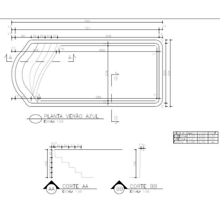 Apresentamos a deslumbrante Piscina Verão Azul 28.000 L: Com medidas externas de 7,55m x 3,34m x 1,40m e medidas internas de 7,21m x 3,00m x 1,40m, oferece um espaço amplo e relaxante para momentos de lazer e diversão. Com uma capacidade volumétrica aproximada de 28.000 litros, esta piscina é perfeita para desfrutar de momentos refrescantes e criar memórias inesquecíveis com a família e amigos. As abas anti-infiltrações garantem durabilidade e segurança para sua piscina.